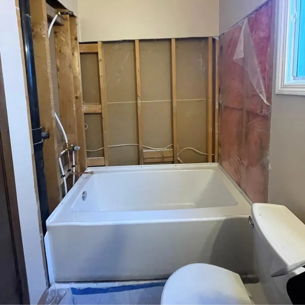 Let us modernize your family bathroom with this bright, functional tub-to-shower upgrade. We installed a crisp subway tile surround and a custom storage niche to create an artisanal, clutter-free space. This renovation combines a premium sliding glass door with durable finishes, ensuring a high-quality, stress-free transformation for your home.